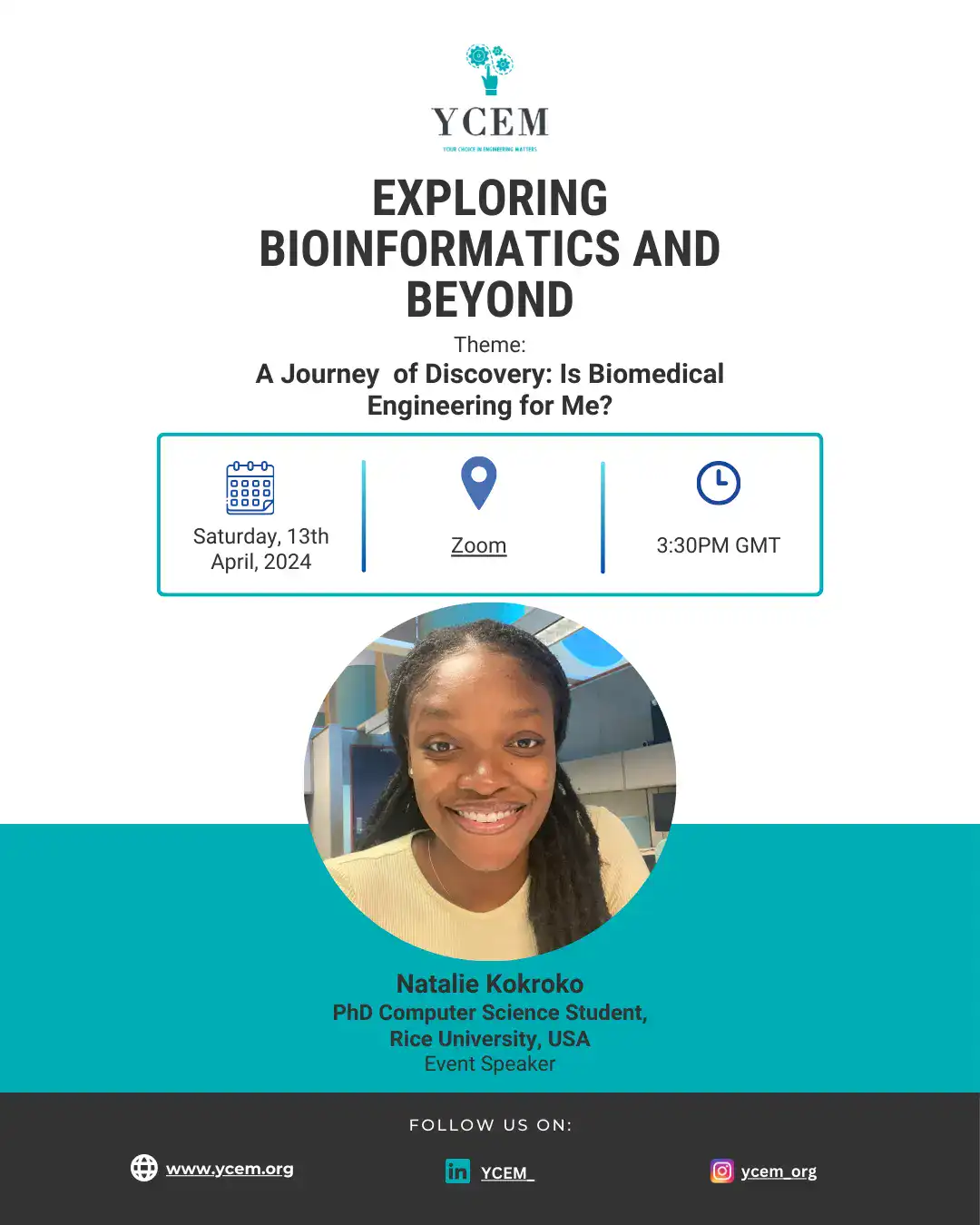 Thank you for joining YCEM’s second talk in our Biomedical Engineering series, ‘Exploring Bioinformatics and Beyond,’where we explored how bioinformatics is transforming healthcare through data-driven insights. From genomics to machine learning, participants gained a deeper understanding of its role in advancing research, personalized medicine, and ethical data use.