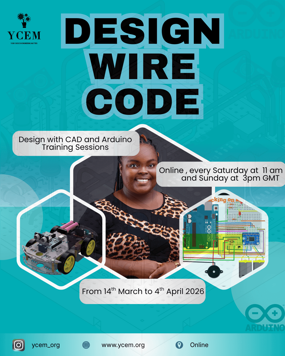 A 4-week CAD & Arduino workshop for girls built around learning by doing. Week one focuses on introducing mechanical design for robotics and getting started with 2D drafting in Fusion 360. Week two continues with 3D modelling using Fusion 360 through practical design exercises. Week three introduces Arduino, covering basic electronics and circuit simulation with TinkerCAD. In week four, everything comes together through hands-on Arduino circuit building and a simple project.